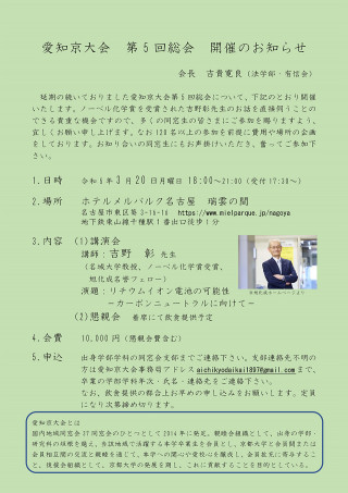 ノーベル化学賞を受賞された、吉野彰 名城大学教授/旭化成名誉フェローのお話を直接伺うことのできる貴重な機会ですので、奮ってご参加ください。