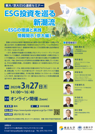 東大/京大ESG連続セミナー ESG投資を巡る新潮流 -ESGの理論と実践、情報開示(京大編)- 申込フォーム