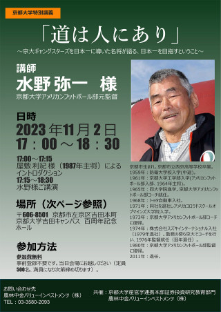 京都大学アメリカンフットボール部「京大ギャングスターズ」を日本一に導いた名将、水野弥一氏による講演会を行います。