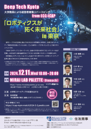 Deep Tech Kyoto 〜大学教員による経営者募集リバースピッチ from ECC-iCAP〜「ロボティクスが拓く未来社会」in 東京 - 京大オリジナル株式会社